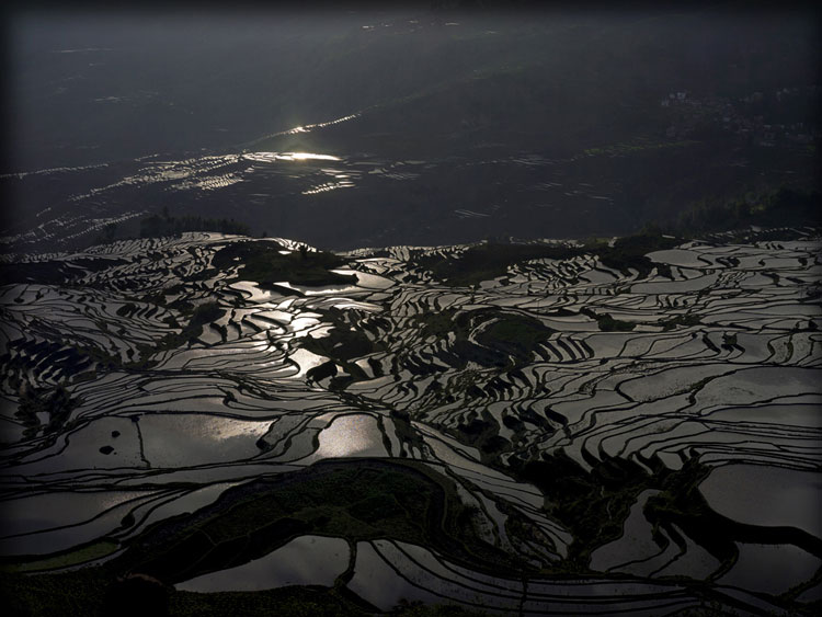 | First Rays, Yuan Yang Terrace Fields, 2007, China; archival color print, 45" x 60" |