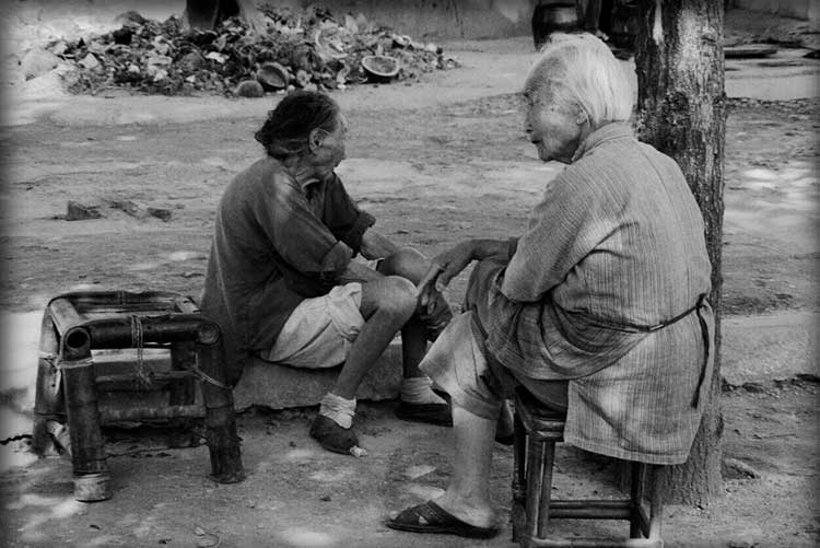 | Seniors Series: Lifelong Buddies, 1982, Jiangsu, China; archival black & white print, 30" x 20" |