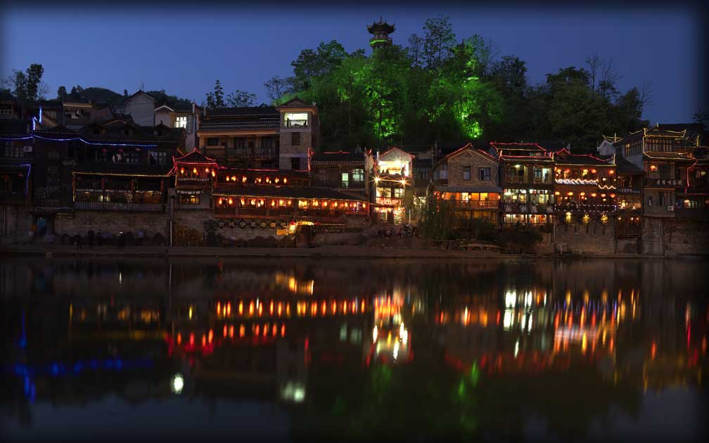 | Flourishing Commerce, Riverbank Resorts, Phoenix, Hunan, China; archival color print, 33" x 60" |