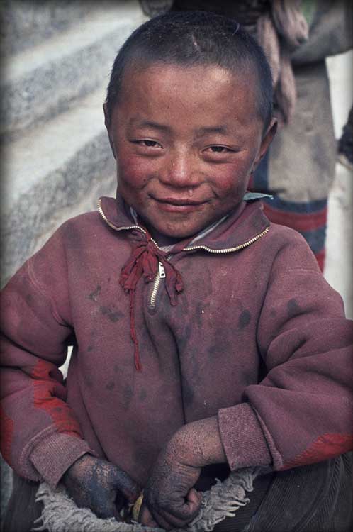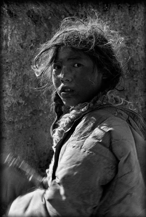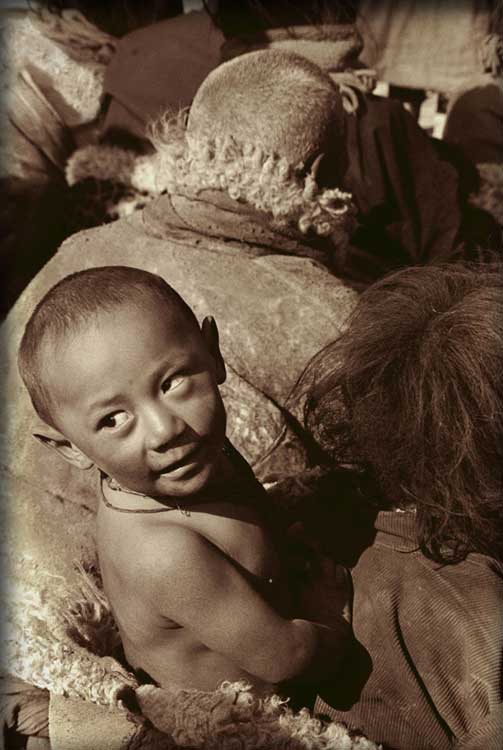 Tibetans: Boy on the Back, 1983, Gansu, China; archival sepia tone print, 30" x 20"