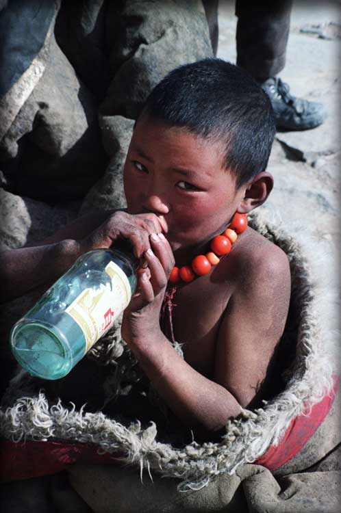 Tibetans: An Early "Drinker" 1983, Gansu, China; archival color print, 30" x 20"