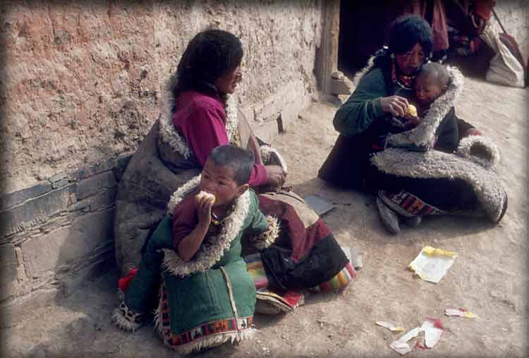 | Tibetans: Lunch Break, 1983, Gansu, China; archival color print, 20" x 30" |