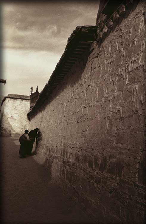 Tibetans: Saluting the Holy Back Wall, 1983, Gansu, China; archival sepia tone print, 30" x 20"