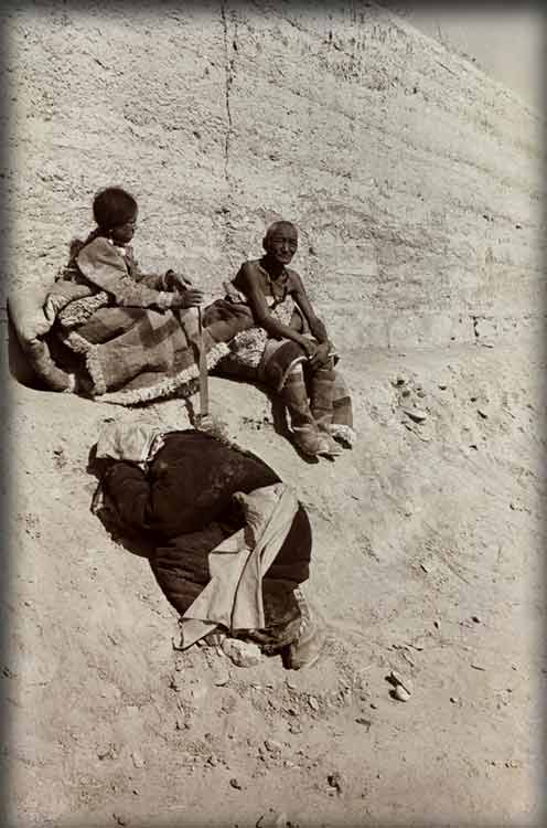 | Tibetans: Pilgrims Resting at Sunset, 1983, Gansu, China; archival sepia tone print, 20" x 30" |
