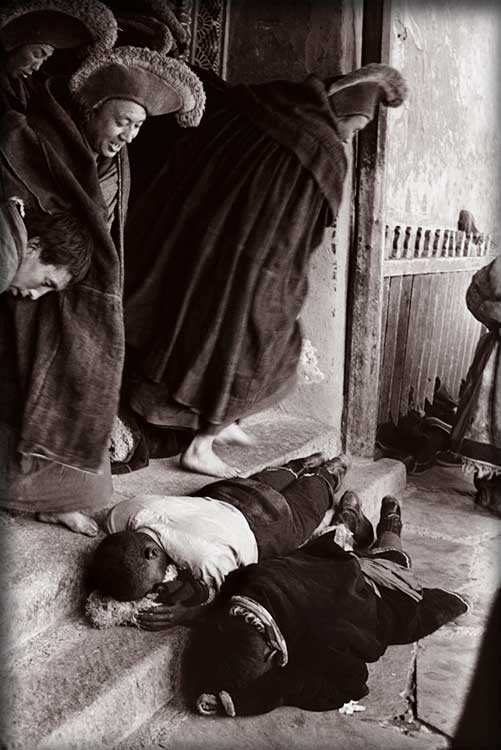 Tibetans: Yearning for Blessing Through Treading, 1983, Gansu, China; archival sepia tone print, 30" x 20"