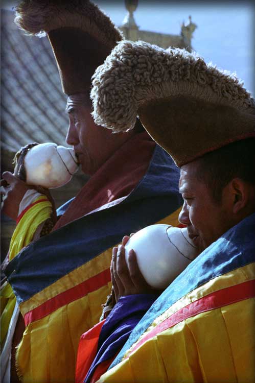 Tibetans: Calls of Morning Ritual, 1983, Gansu, China; archival color print, 30" x 20"