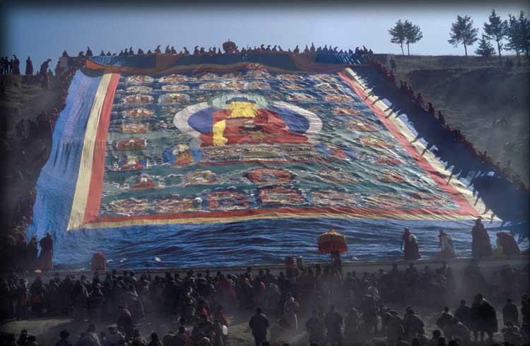 | Tibetans: "Buddha's Sunbath" Ceremony, 1983, Gansu, China; archival color print, 20" x 30" |